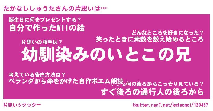 | 女子向けラノベタイトル風あだ名 | 『(仮)たかなししゅうたのやんごとなき事情』 |