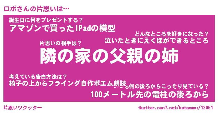 | ヘコむあだ名 | 『ロボにゅー』『なまこ酢』『ロボを』 |