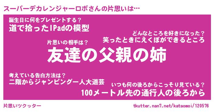 | 胡散臭い通販商品みたいなあだ名 | 『億万長者になれる水晶球…その名も「スーパーデカレンジャーロボ」』 |