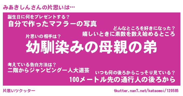 | 男性向けラノベタイトル風あだ名 | 『みあきしんの憂鬱』 |