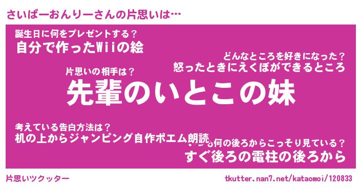 | 胡散臭い通販商品みたいなあだ名 | 『モテモテ間違いなし水晶球…その名も「さいばーおんりー」』 |