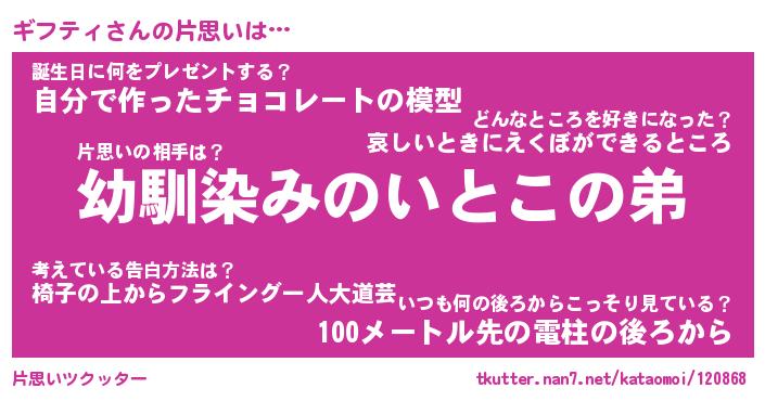 | 意味不明あだ名 | 『ペロリンギフティ』『永久保存ギフティ』 |