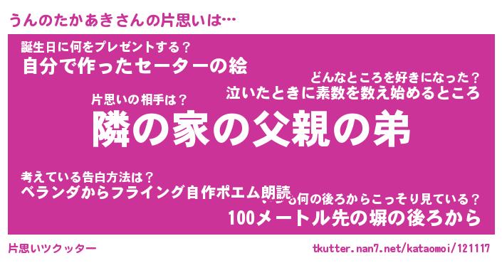 | 胡散臭い通販商品みたいなあだ名 | 『モテモテ間違いなし水晶球…その名も「うんのたかあき」』 |