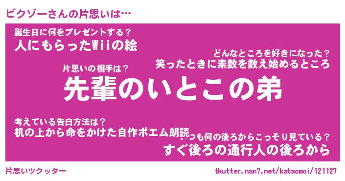 | ヘコむあだ名 | 『ビクにゅー』『牛乳』『ビクっ子』 |