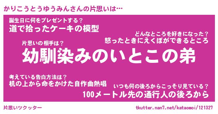 | 男性向けラノベタイトル風あだ名 | 『かりこうとうゆうみんの憂鬱』 |