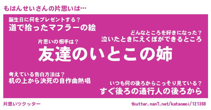 | 胡散臭い通販商品みたいなあだ名 | 『億万長者になれる水晶球…その名も「もはんせい」』 |