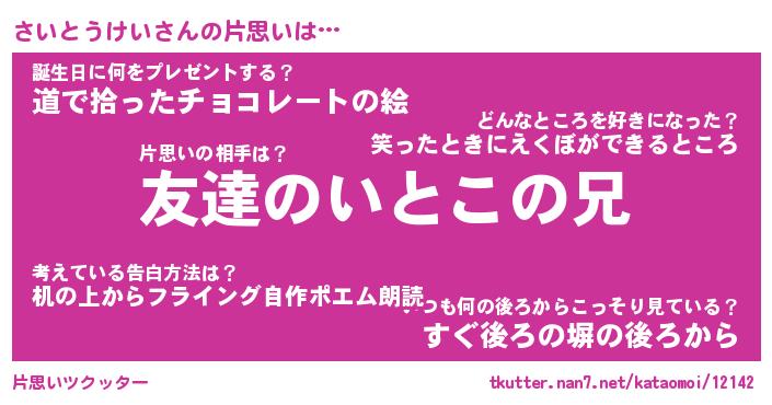 | 胡散臭い通販商品みたいなあだ名 | 『億万長者になれる水晶球…その名も「さいとうけい」』 |