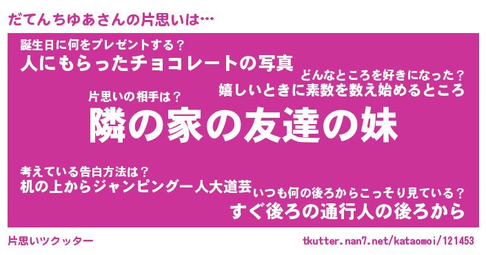 | 伝説のあだ名 | 『伝説のスナイパーだてんちゆあ』 |