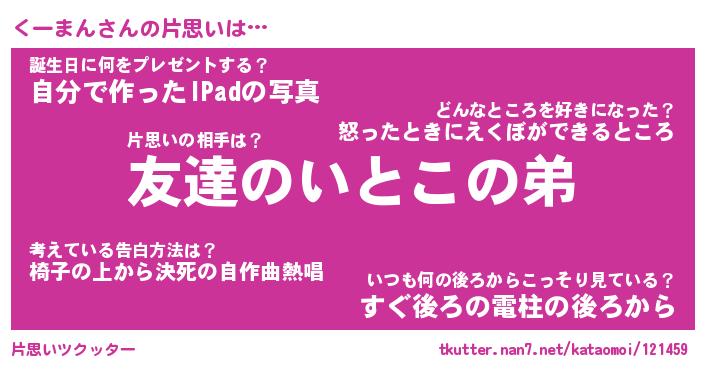 | ヘコむあだ名 | 『くーもー』『なまこ酢』『くーお』 |