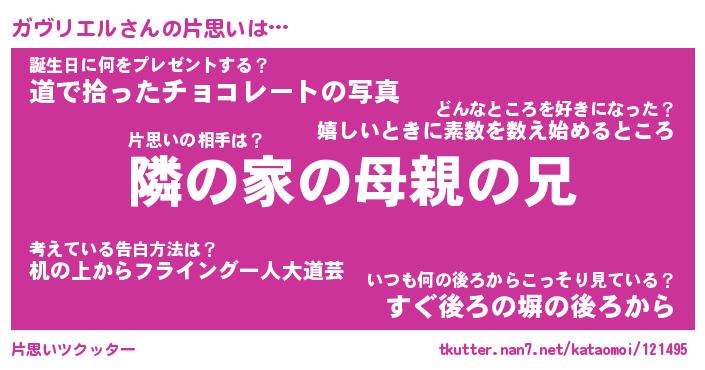 | 胡散臭い通販商品みたいなあだ名 | 『必ず成功するブレスレット…その名も「ガヴリエル」』 |