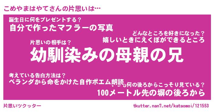 | ヘコむあだ名 | 『こめにー』『豆乳』『こめを』 |