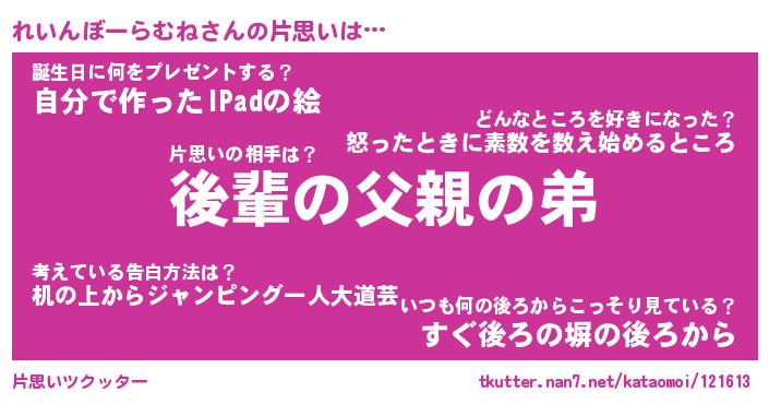 | 胡散臭い通販商品みたいなあだ名 | 『モテモテ間違いなし水晶球…その名も「れいんぼーらむね」』 |