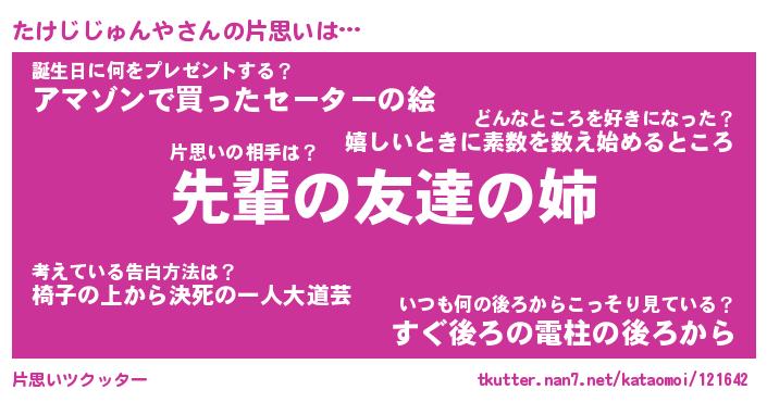 | 胡散臭い通販商品みたいなあだ名 | 『モテモテ間違いなし霊験あらたかなお札…その名も「たけじじゅんや」』 |
