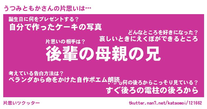 | 胡散臭い通販商品みたいなあだ名 | 『億万長者になれるブレスレット…その名も「うつみともか」』 |