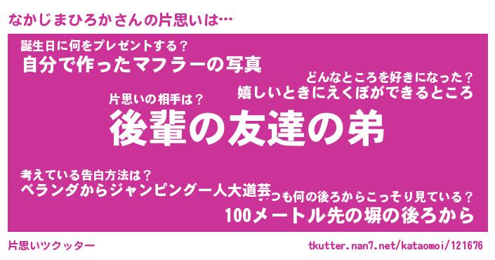 | ヘコむあだ名 | 『なかっふぃ~』『つくし』『なかを』 |