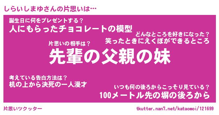 | 胡散臭い通販商品みたいなあだ名 | 『モテモテ間違いなし水晶球…その名も「しらいしまゆ」』 |