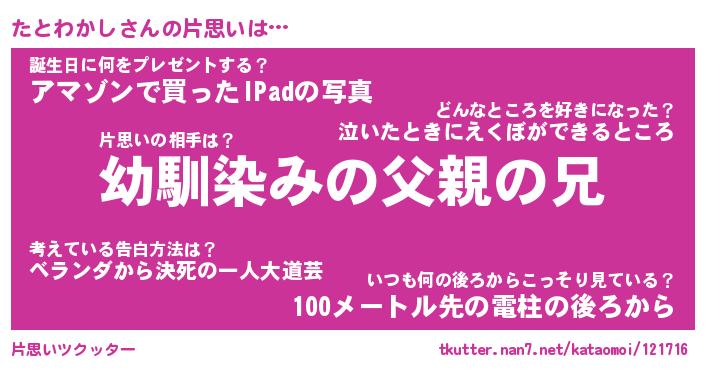 | 男性向けラノベタイトル風あだ名 | 『たとわかしの憂鬱』 |