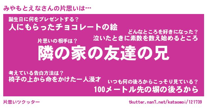 | ヘコむあだ名 | 『みやっふぃ~』『なまこ酢』 |