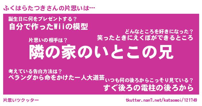 | ヘコむあだ名 | 『ふくにゅー』『牛乳』『ふくぷりん』 |