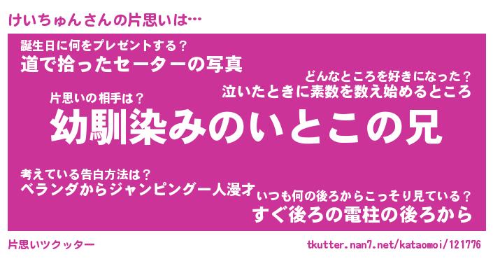 | ヘコむあだ名 | 『けいもー』『豆乳』『けいっちょ』 |