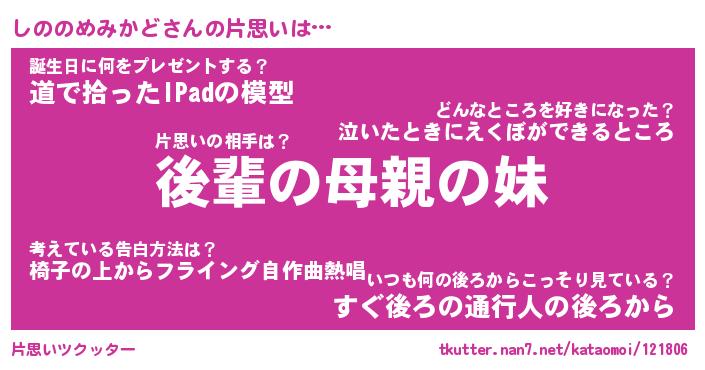 | 胡散臭い通販商品みたいなあだ名 | 『億万長者になれるブレスレット…その名も「しののめみかど」』 |