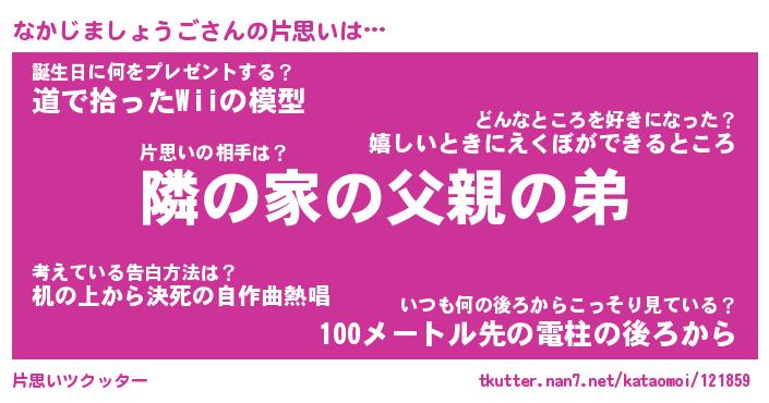 | 男性向けラノベタイトル風あだ名 | 『なかじましょうごの憂鬱』 |