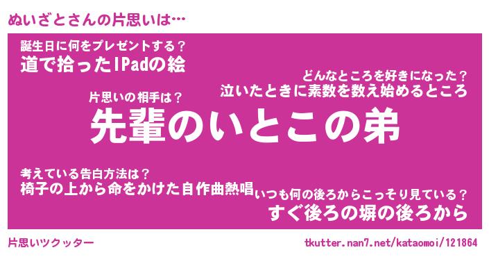| 胡散臭い通販商品みたいなあだ名 | 『モテモテ間違いなし水晶球…その名も「ぬいざと」』 |