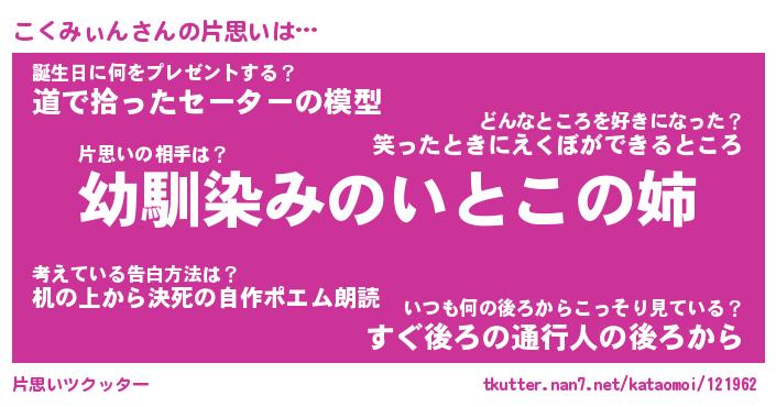 | 男性向けラノベタイトル風あだ名 | 『こくみぃんの憂鬱』 |