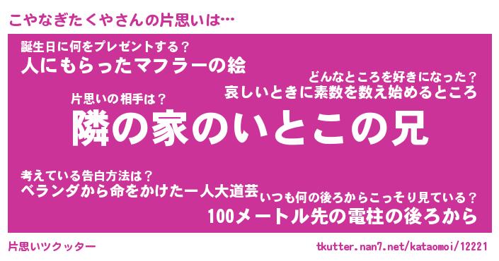| 胡散臭い通販商品みたいなあだ名 | 『必ず成功する霊験あらたかなお札…その名も「こやなぎたくや」』 |