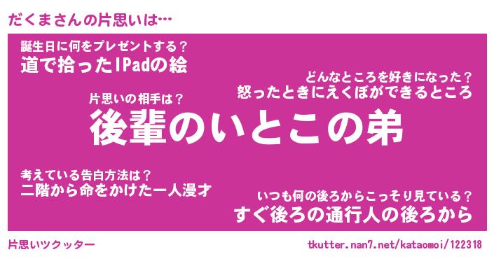 | 胡散臭い通販商品みたいなあだ名 | 『億万長者になれる水晶球…その名も「だくま」』 |