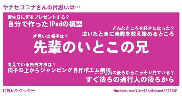 | 胡散臭い通販商品みたいなあだ名 | 『モテモテ間違いなし水晶球…その名も「ヤナセココナ」』 |