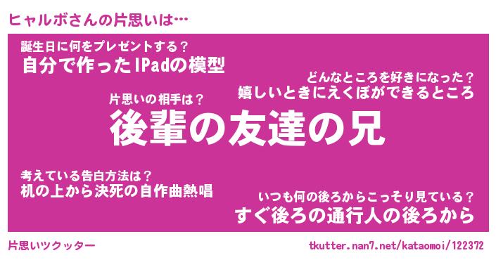 | 意味不明あだ名 | 『ペロリンヒャルボ』『永久保存ヒャルボ』 |