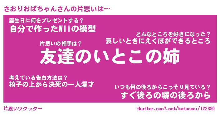 | 意味不明あだ名 | 『ペロリンさおりおばちゃん』 |