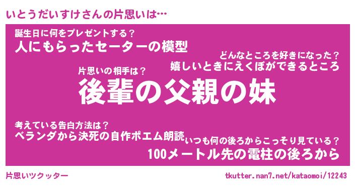 | 胡散臭い通販商品みたいなあだ名 | 『モテモテ間違いなしブレスレット…その名も「いとうだいすけ」』 |
