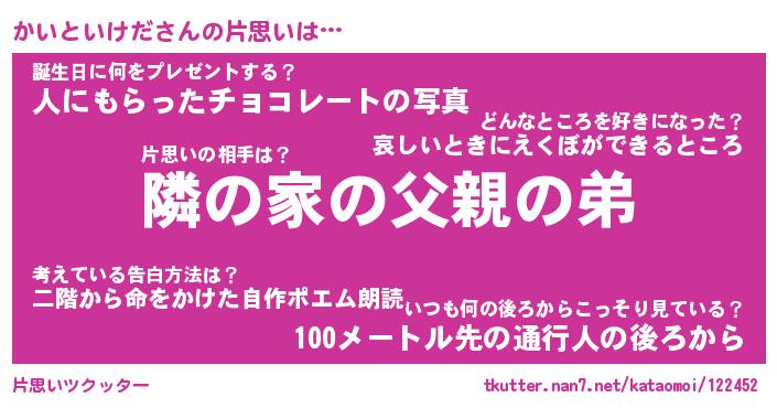 | 胡散臭い通販商品みたいなあだ名 | 『必ず成功する水晶球…その名も「かいといけだ」』 |