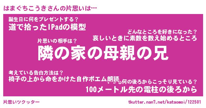 | 胡散臭い通販商品みたいなあだ名 | 『モテモテ間違いなしブレスレット…その名も「はまぐちこうき」』 |