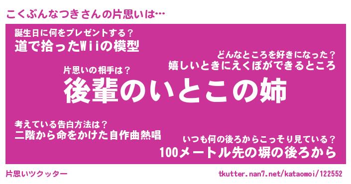 | 伝説のあだ名 | 『不死鳥のスナイパーこくぶんなつき』 |