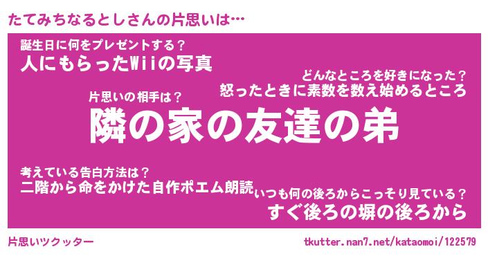 | 胡散臭い通販商品みたいなあだ名 | 『必ず成功する霊験あらたかなお札…その名も「たてみちなるとし」』 |