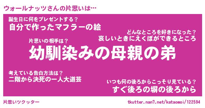 | 男性向けラノベタイトル風あだ名 | 『ウォールナッツの憂鬱』 |