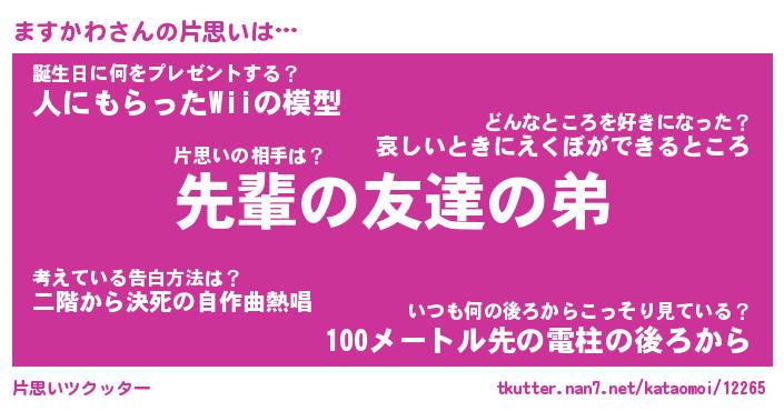 | 胡散臭い通販商品みたいなあだ名 | 『モテモテ間違いなし霊験あらたかなお札…その名も「ますかわ」』 |