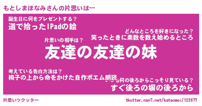 | 意味不明あだ名 | 『ペロリンもとしまほなみ』 |