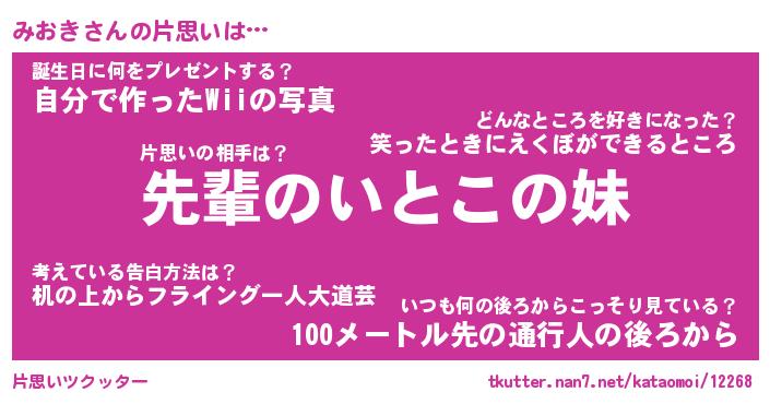 | 胡散臭い通販商品みたいなあだ名 | 『モテモテ間違いなし水晶球…その名も「みおき」』 |