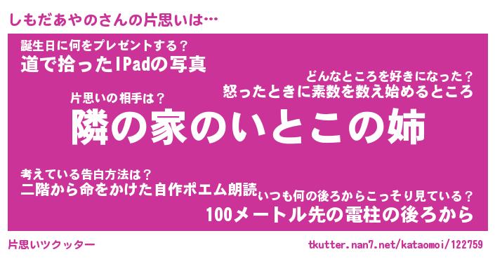 | 胡散臭い通販商品みたいなあだ名 | 『必ず成功する霊験あらたかなお札…その名も「しもだあやの」』 |