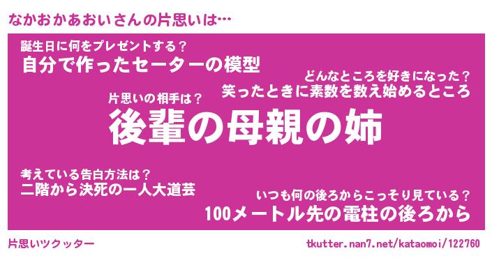 | 胡散臭い通販商品みたいなあだ名 | 『億万長者になれるブレスレット…その名も「なかおかあおい」』 |