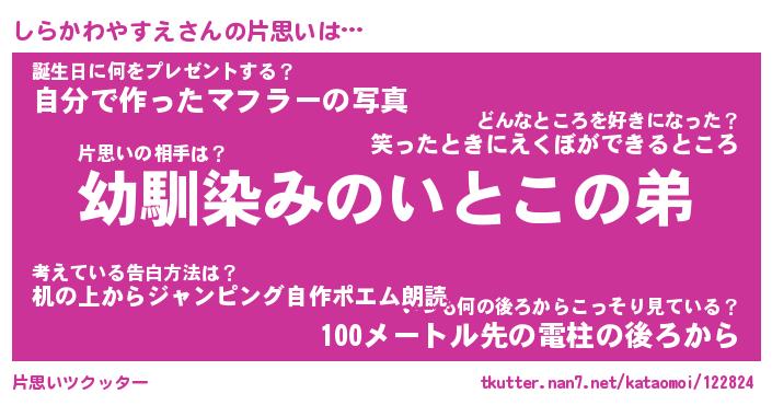 | 胡散臭い通販商品みたいなあだ名 | 『必ず成功する水晶球…その名も「しらかわやすえ」』 |