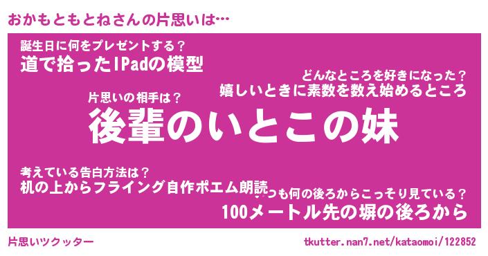 | 胡散臭い通販商品みたいなあだ名 | 『モテモテ間違いなし水晶球…その名も「おかもともとね」』 |