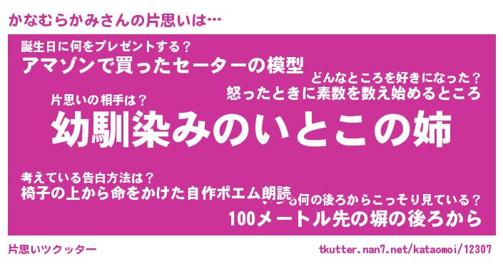 | 男性向けラノベタイトル風あだ名 | 『かなむらかみの憂鬱』 |