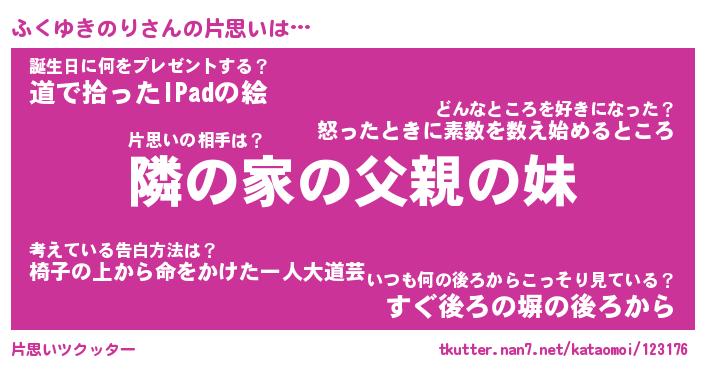 | 男性向けラノベタイトル風あだ名 | 『ふくゆきのりの憂鬱』 |