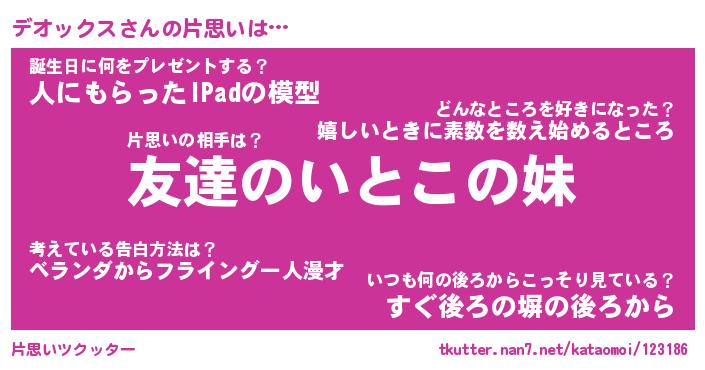 | ヘコむあだ名 | 『デオもー』『なまこ酢』『デオっ子』 |