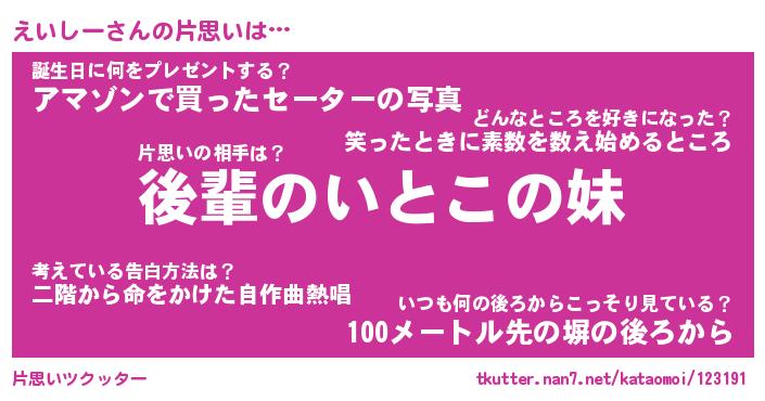| 意味不明あだ名 | 『ペロリンえいしー』『永久保存えいしー』 |